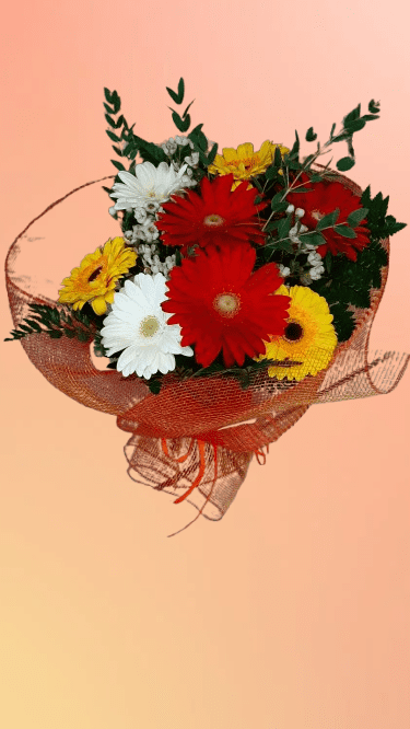Bouquet di gerbere colorate. Un omaggio semplice e allegro.